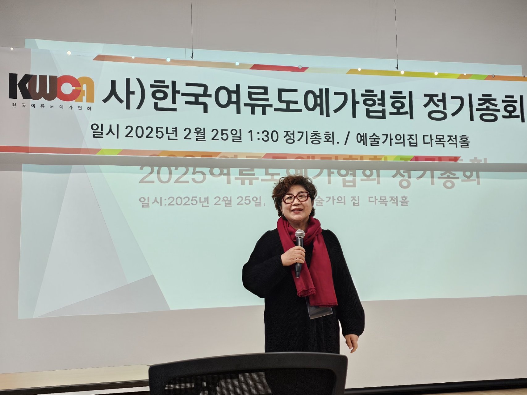 2025 정기총회 <2025 정기총회> 일정: 2025.02.25일 13:30 장소: 예술가의집 다목적 홀 (종로구 동숭동 1-130) 주최: (사)한국여류도예가협회 주관: (사)한국여류도예가협회 임원일동 이 글 공유하기:트위터FacebookPinterest인쇄 2025-10-01T14:05:41+09:002025-02-01|Categories: Workshop 및 기타활동, 협회활동|Tags: 2025, 총회| 관련글보기 2025 신입회원전 Gallery 2025 신입회원전 2024 신입회원전 Gallery 2024 신입회원전 2024 국제전시 Gallery 2024 국제전시 2024 정기전시 Gallery 2024 정기전시 2023 공예 트렌드페어 Gallery 2023 공예 트렌드페어 댓글 남기기 응답 취소